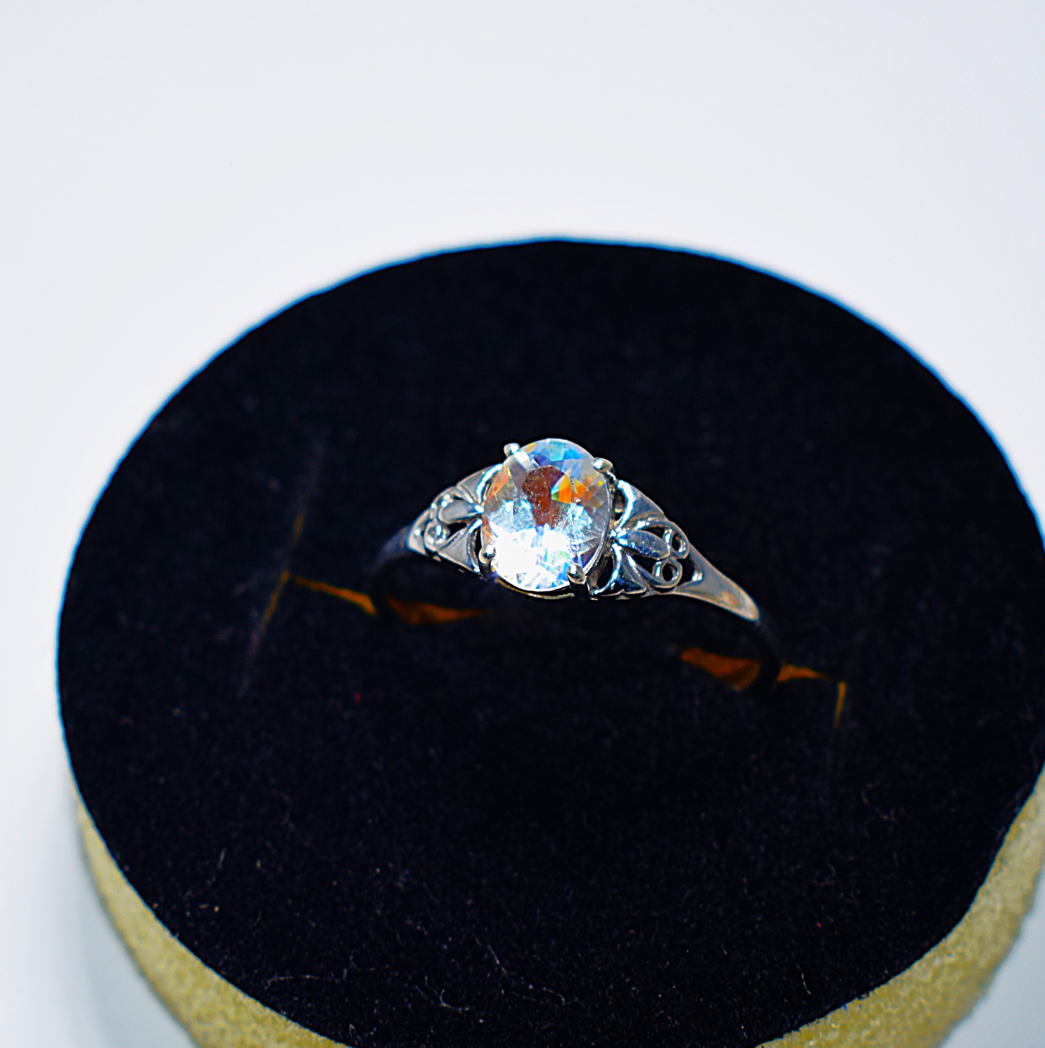 Серебряное кольцо с природным радужным, лунным камнем, вес 1,336 гр., размер 18,0 мм