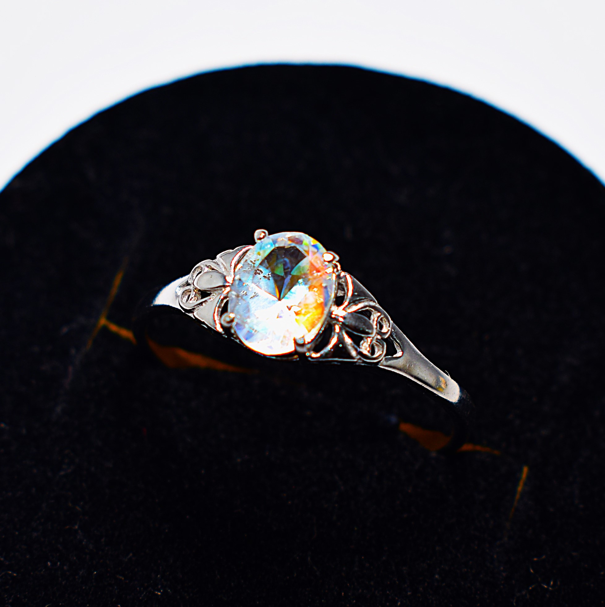 Серебряное кольцо с природным радужным, лунным камнем, вес 1,496 гр., размер 19,25 мм