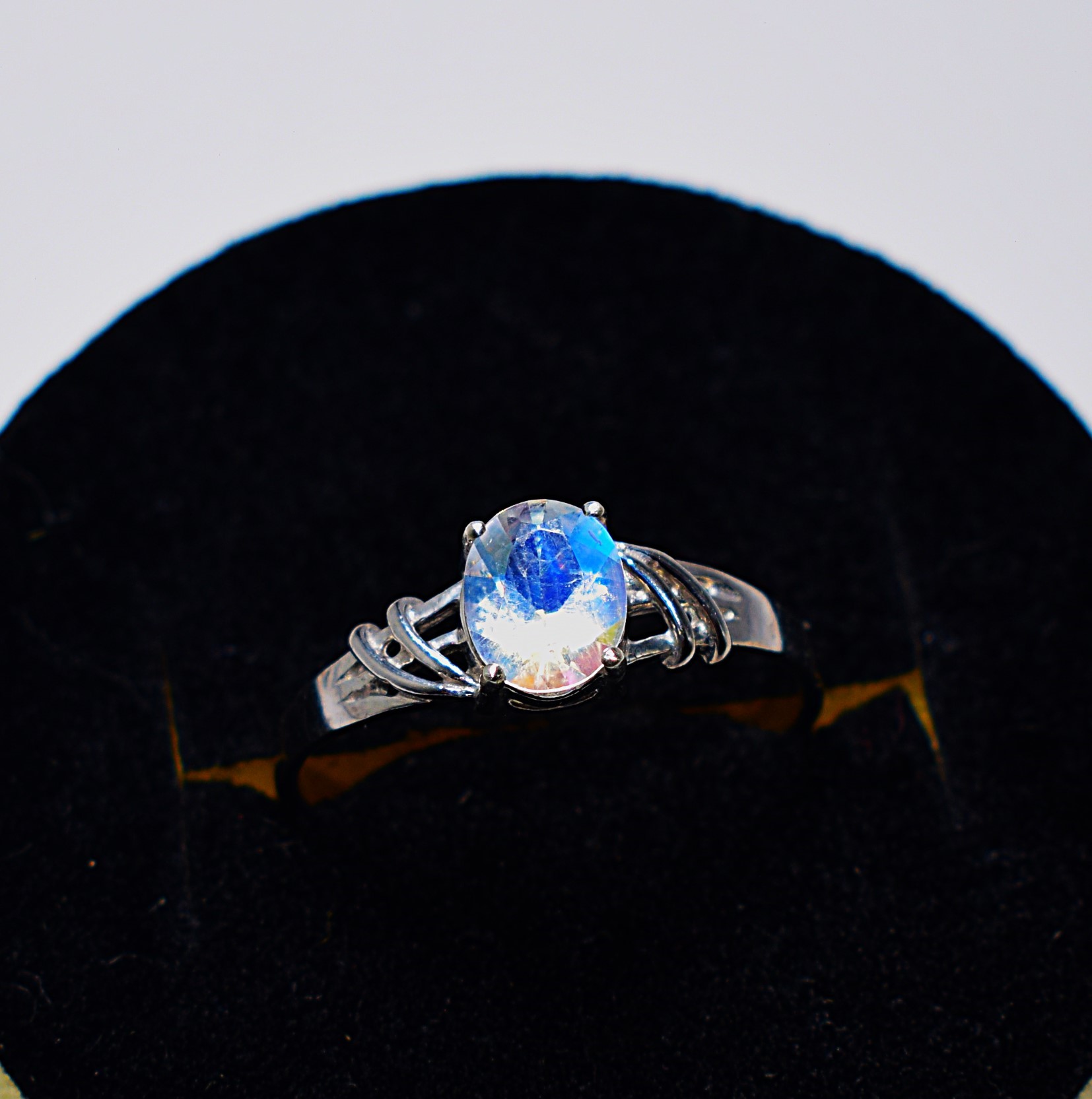 Серебряное кольцо с природным радужным, лунным камнем, вес 1,738 гр., размер 18,5 мм