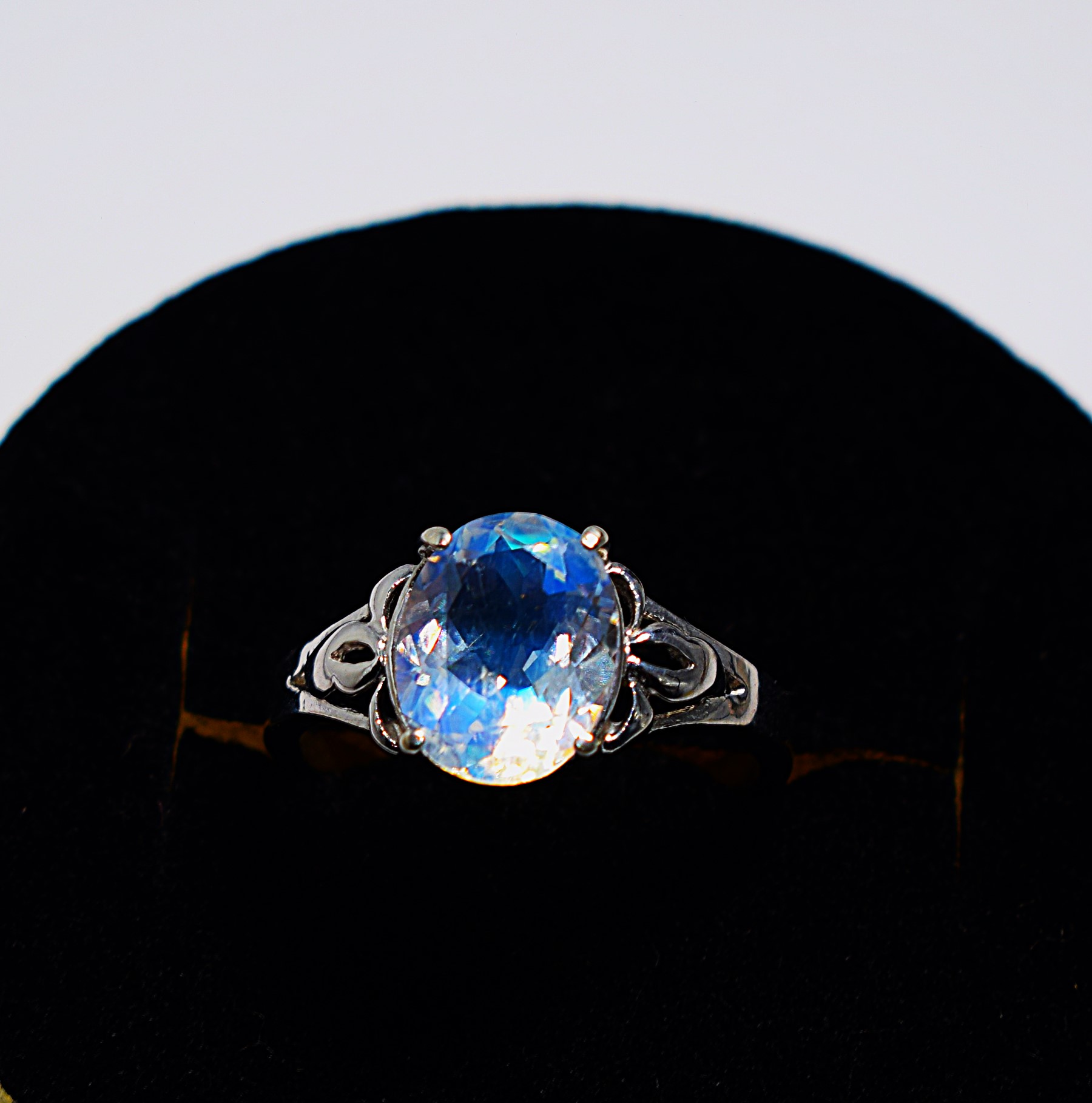 Серебряное кольцо с природным радужным, лунным камнем, вес 2,100 гр., размер 16,0 мм