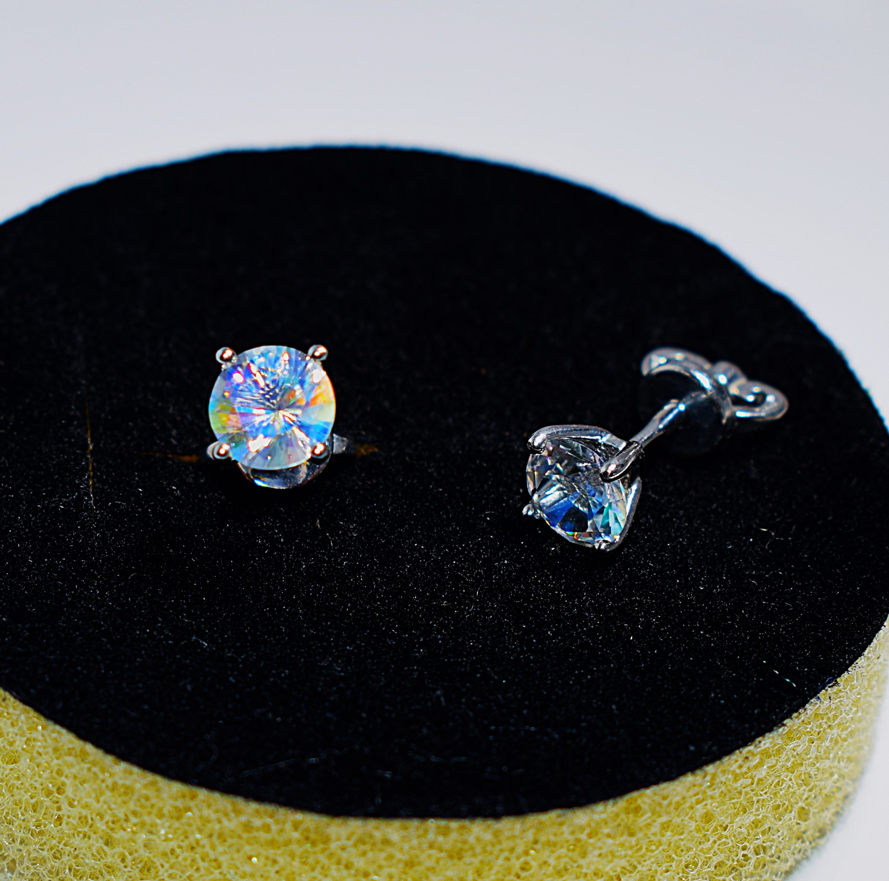 Серебряные серьги с природным радужным, лунным камнем, вес 1,422 гр.