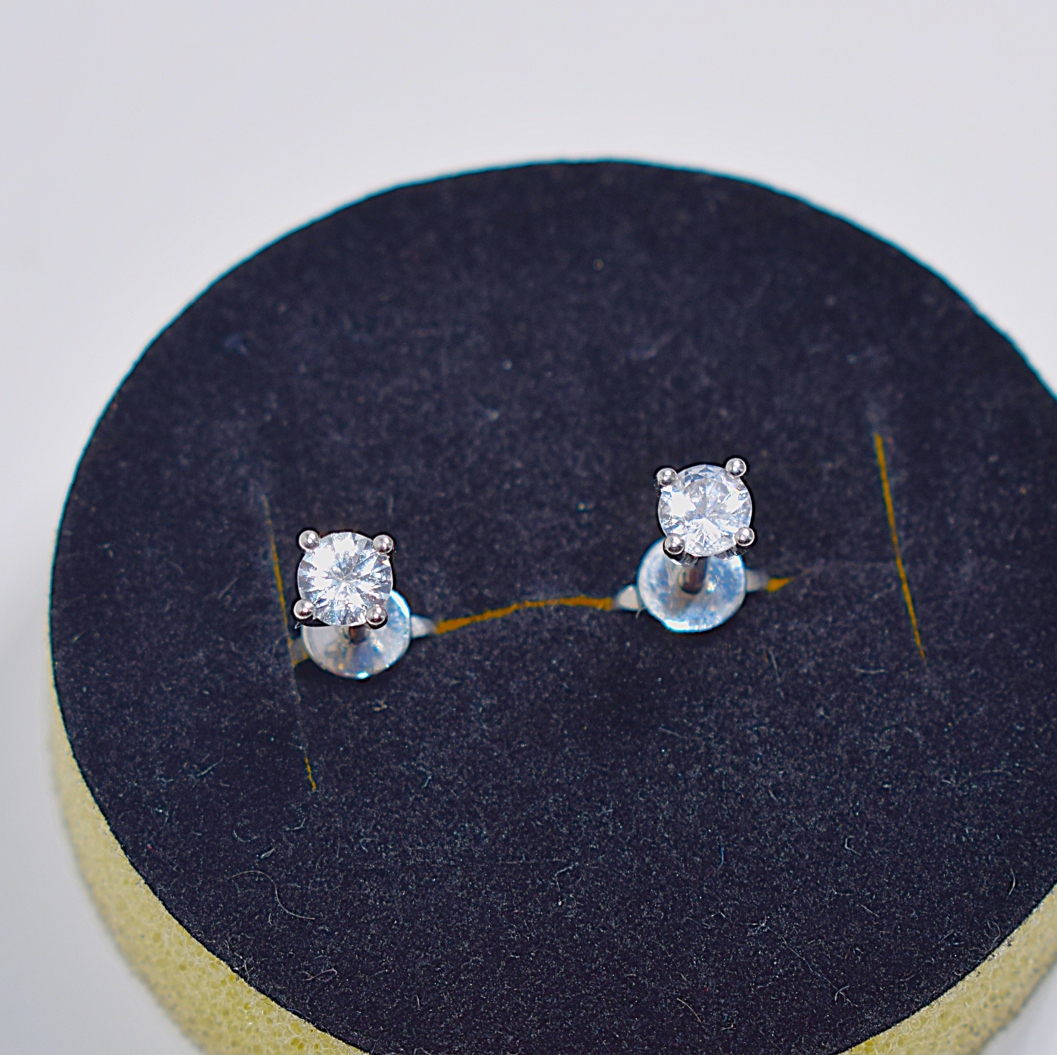 Серебряные серьги, пусеты с натуральным белым сапфиром,