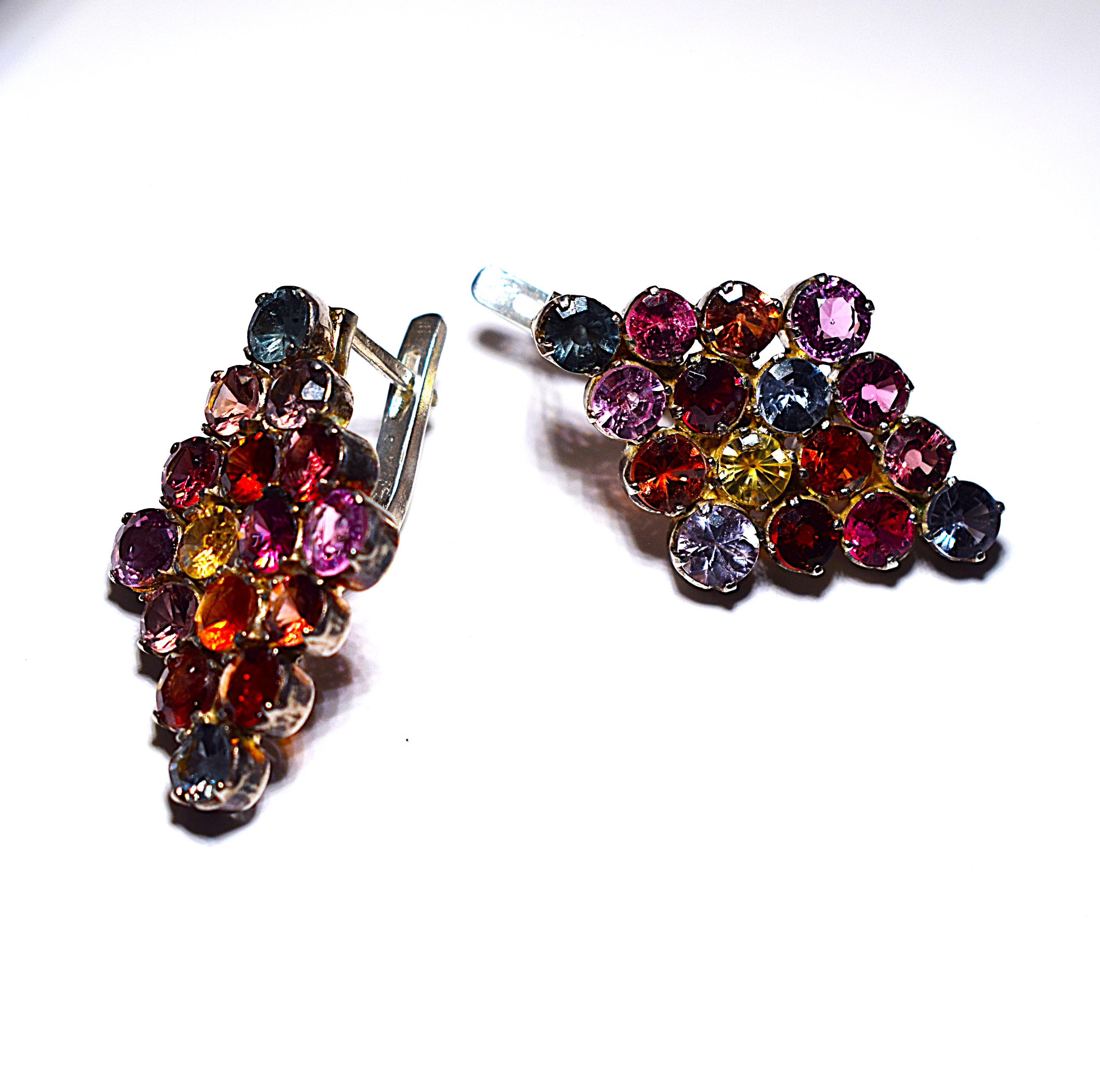 Серебряные серьги с природной шпинелью, вес 7,688 гр.