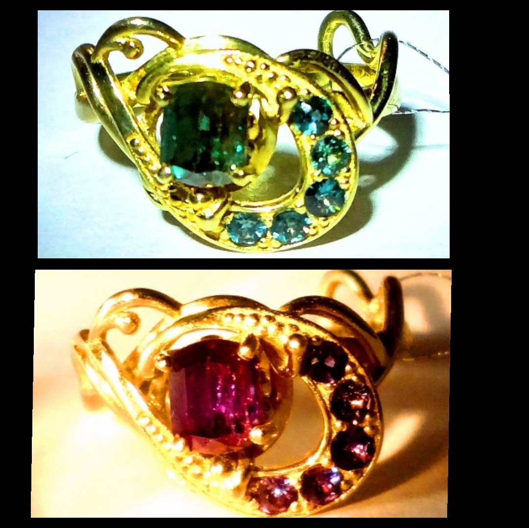 Золотое кольцо с натуральным александритом, вес 4,954 гр., размер 18,25 мм