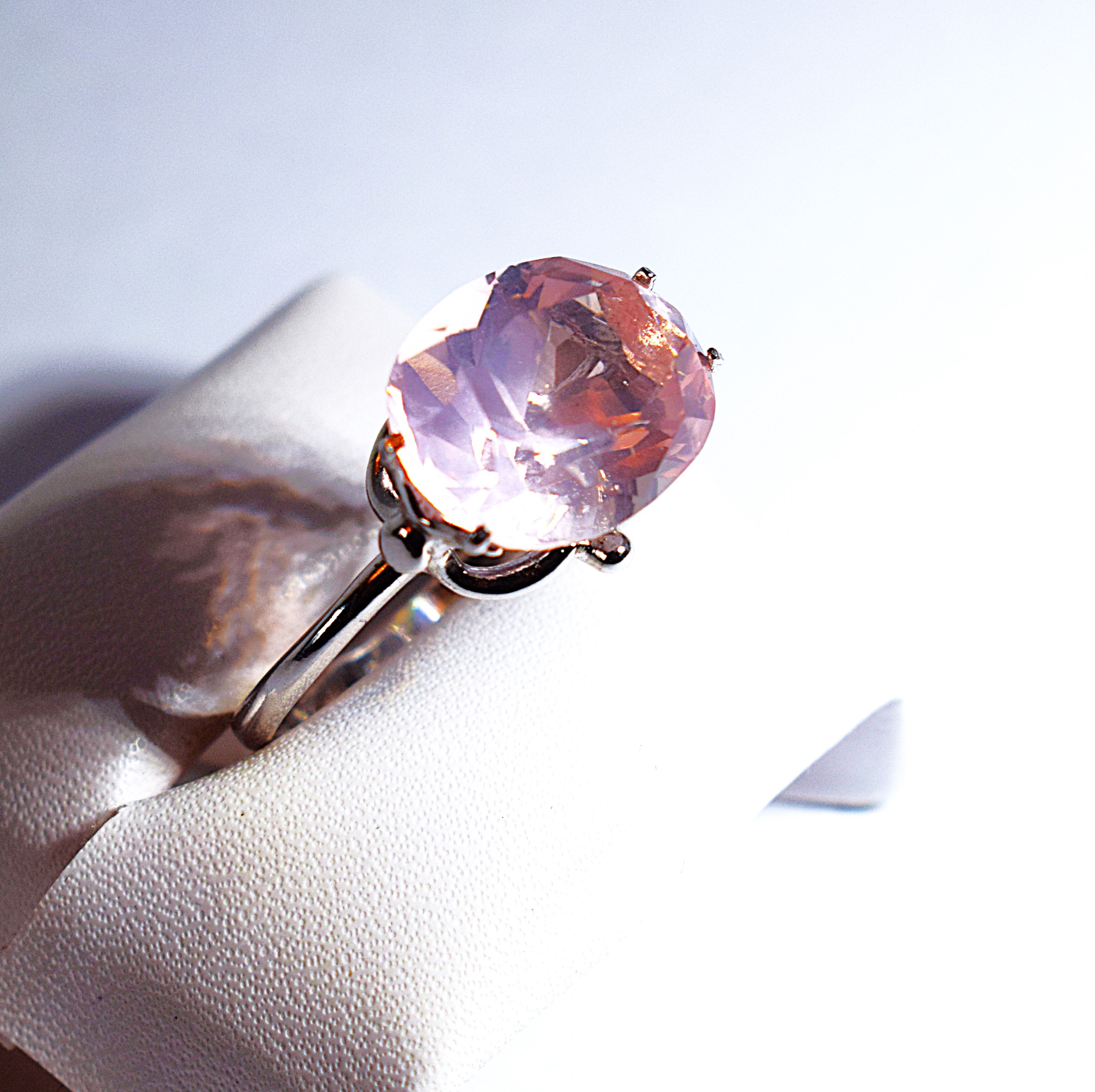 Серебряное кольцо с природным розовым кварцем, вес 4,708 гр., размер 18,25 мм