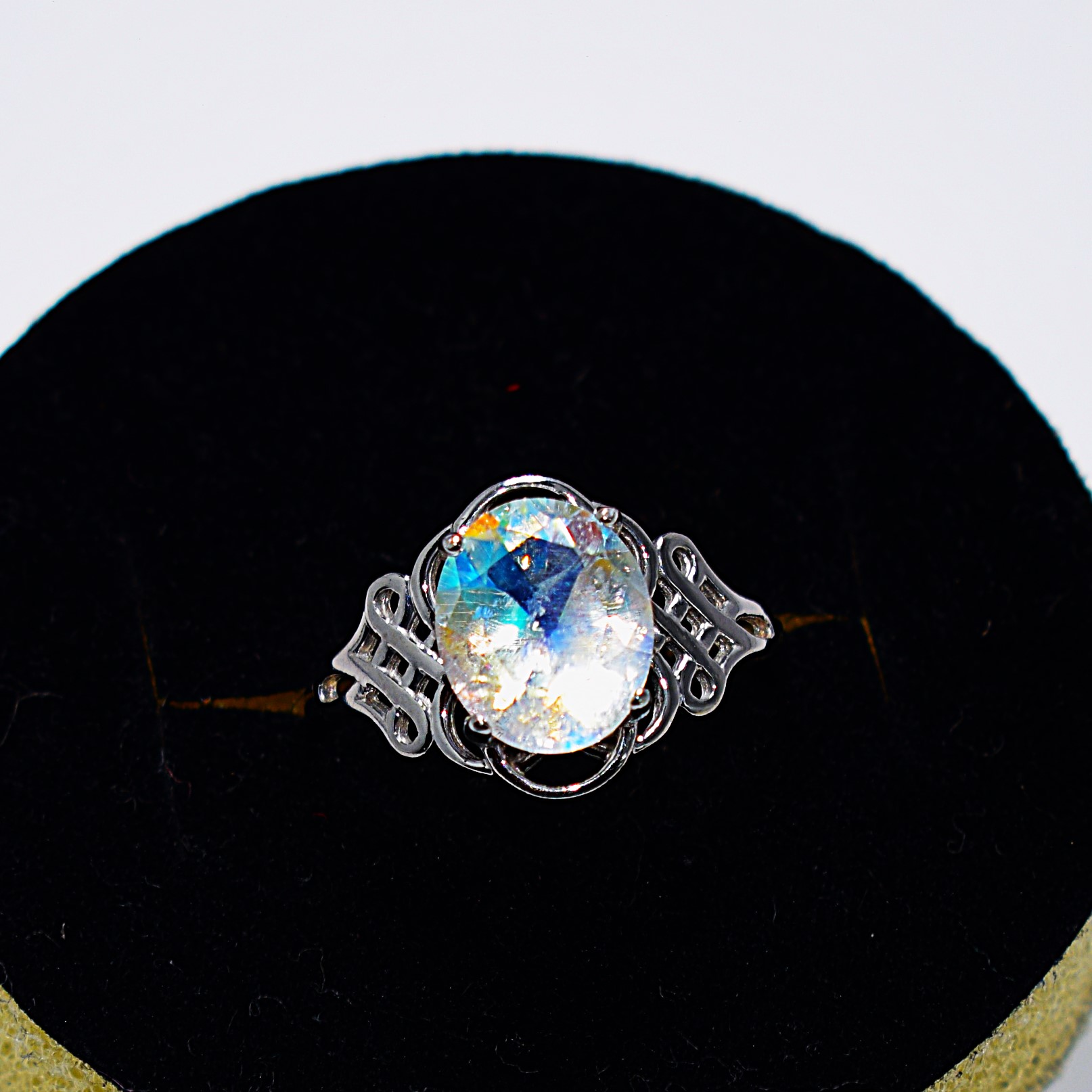 радужным, лунным камнем,