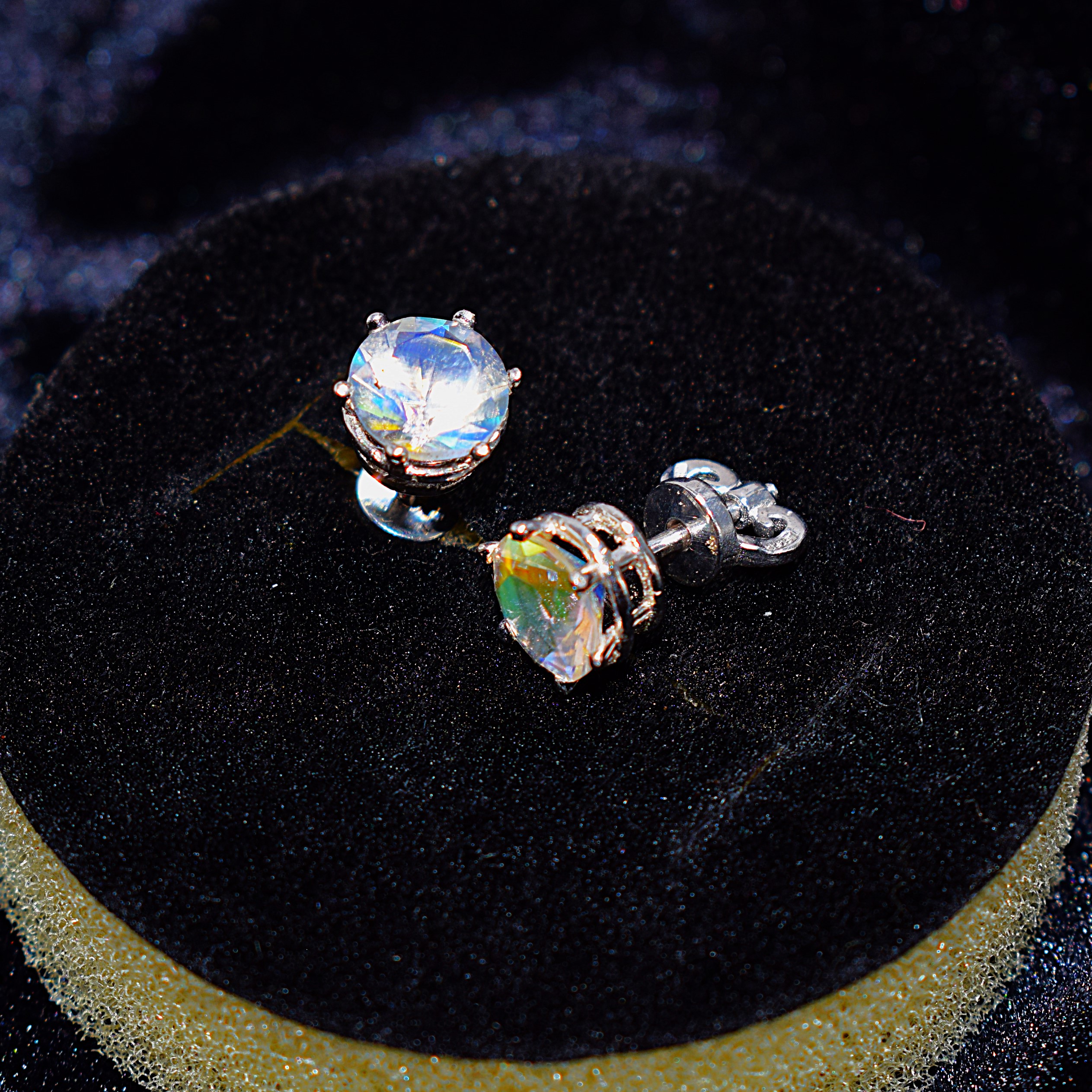 Серебряные серьги с природным радужным, лунным камнем, вес 1,484 гр.