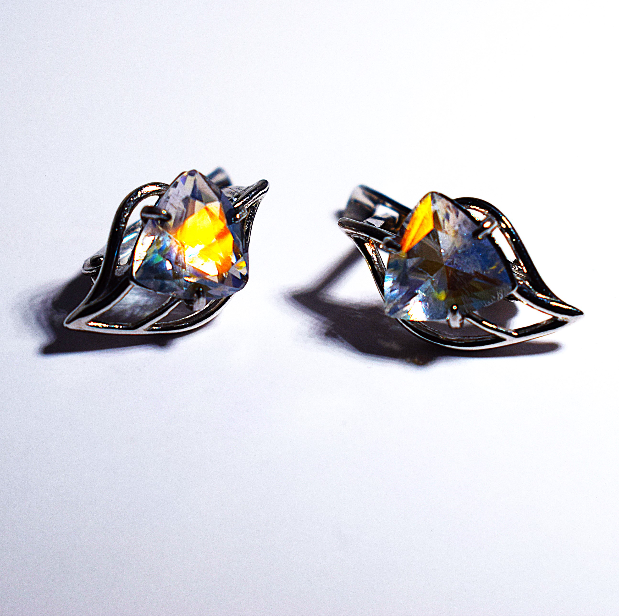Серебряные серьги с природным радужным, лунным камнем, вес 2,780 гр.