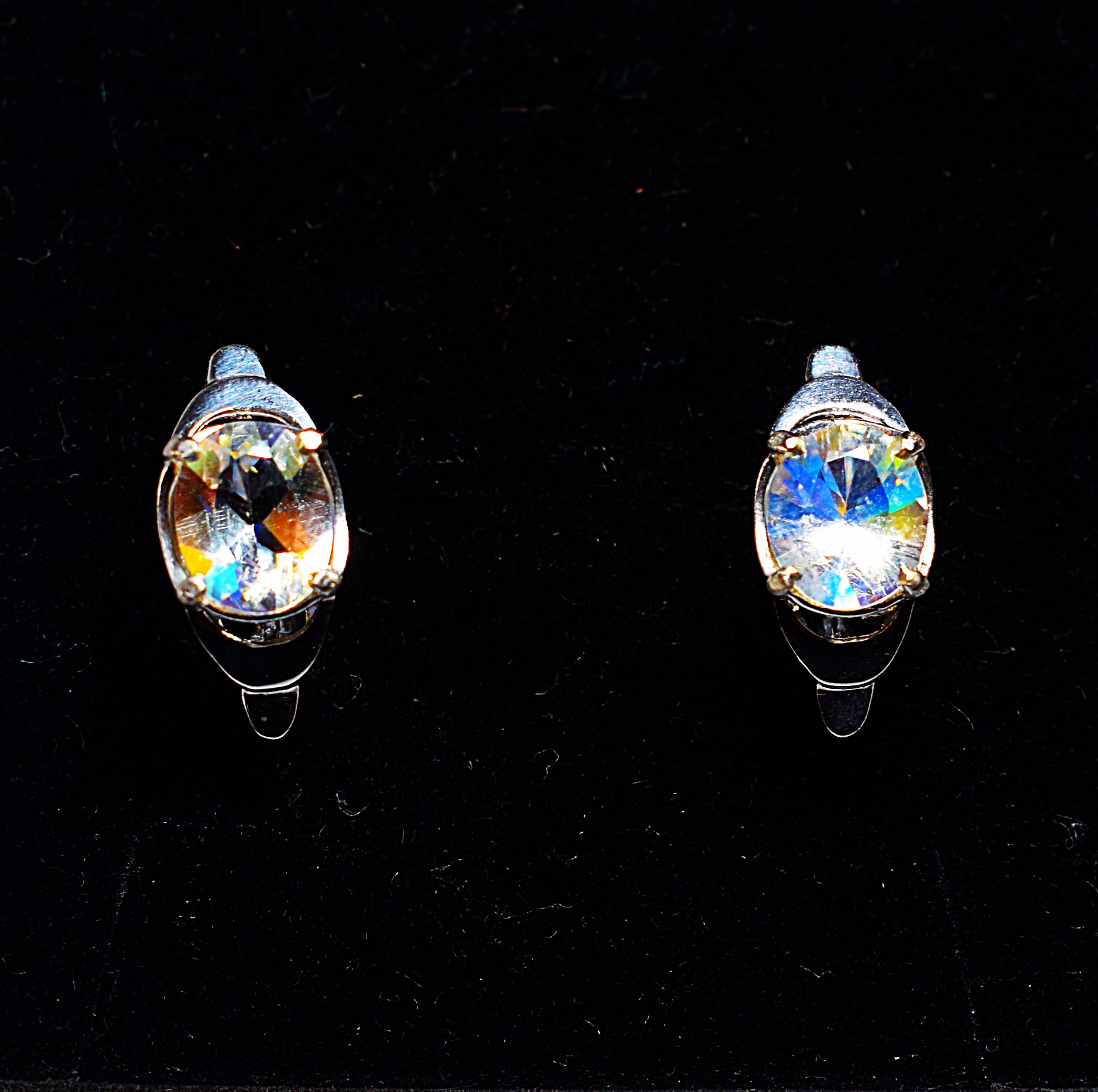 Серебряные серьги с природным радужным, лунным камнем, вес 2,890 гр.