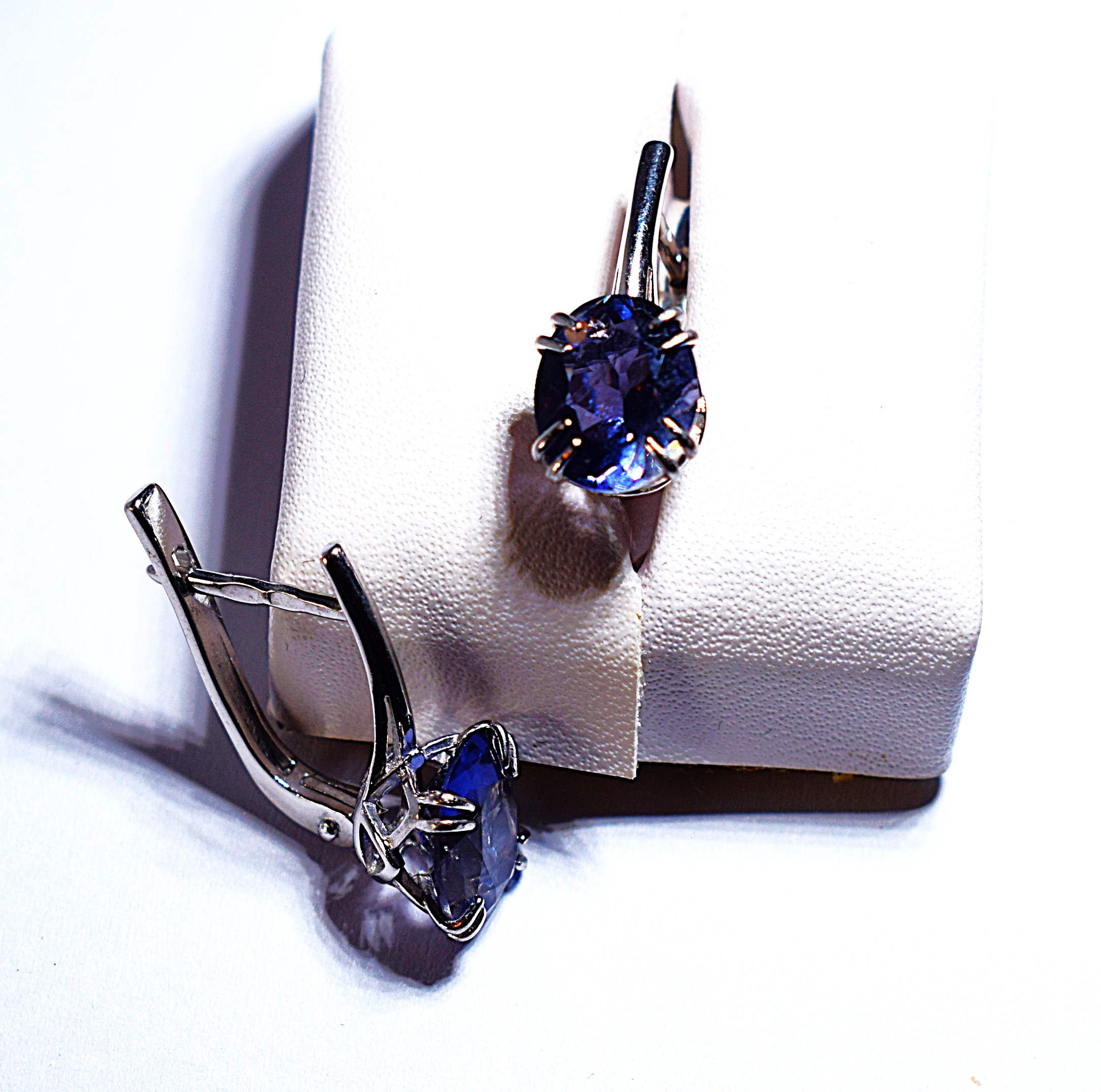 Серебряные серьги с природным кордмеритом, иолитом, вес 3,676 гр.
