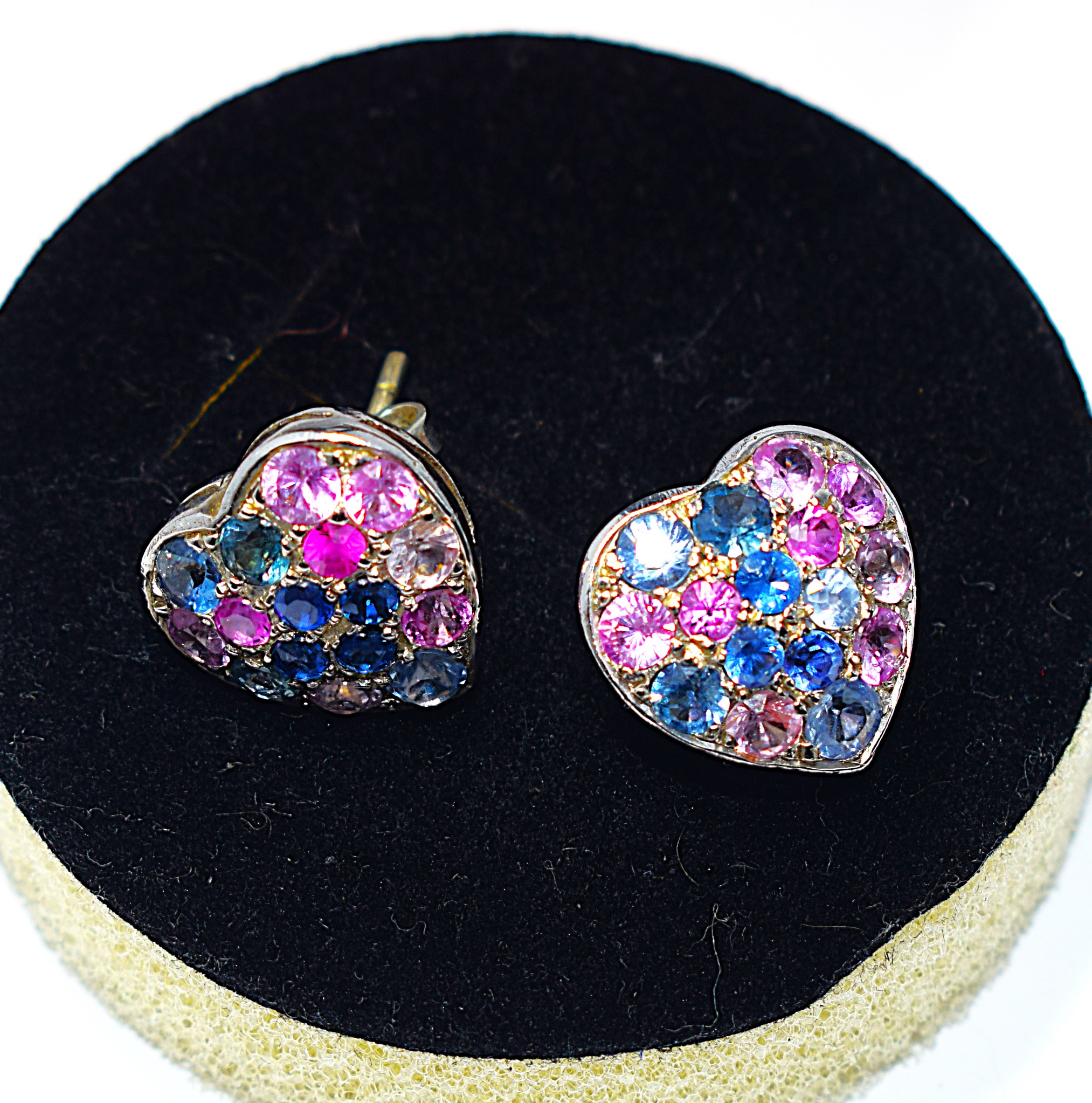 Серебряные серьги с природными цветными сапфирами, вес 3,924 гр.